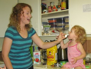 While we were making the play dough, Kesa thought that the salt was sugar and wanted to lick it.