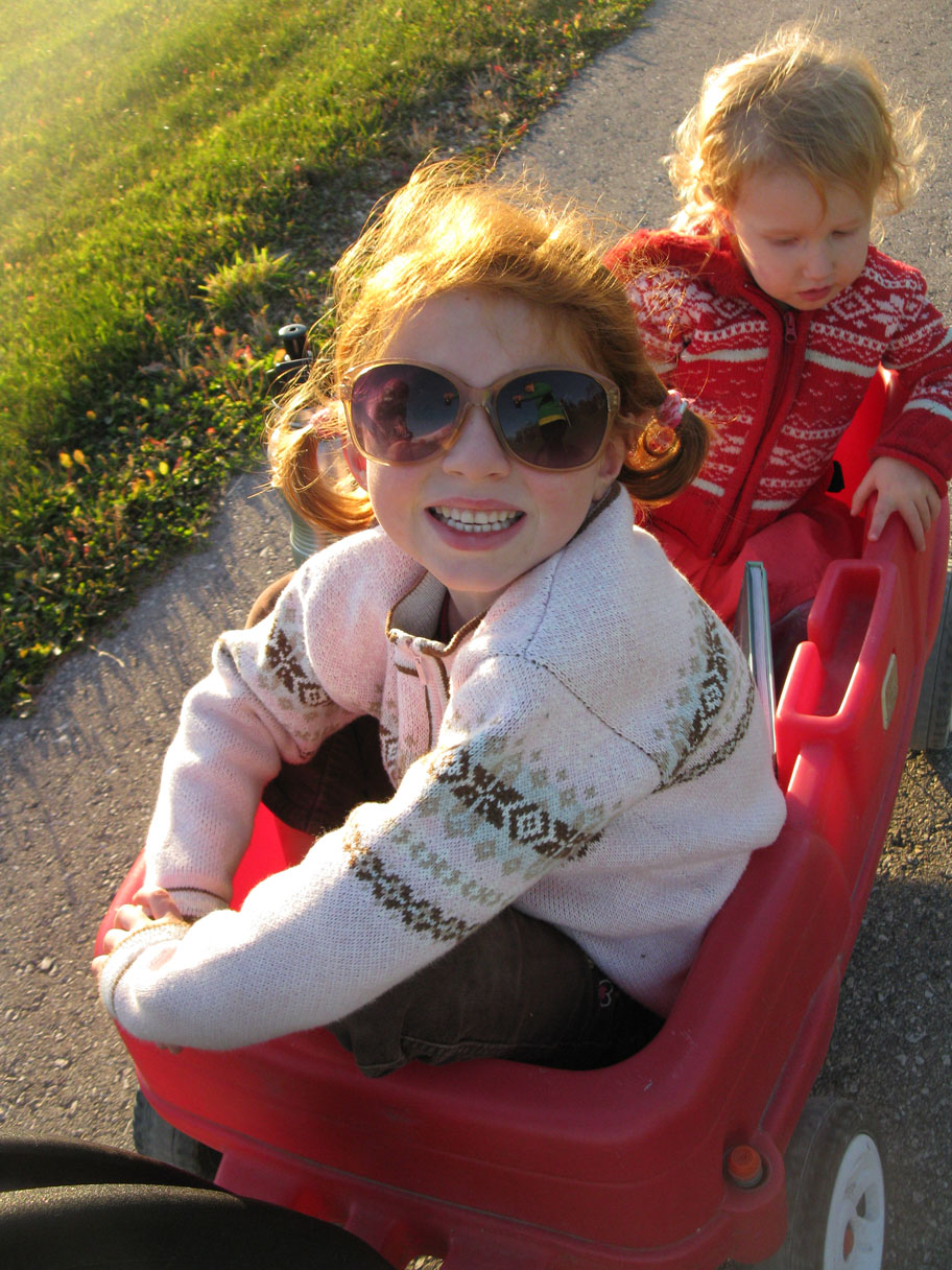 On our walks, we pick up garbage/recyclables. I know, I know, sounds weird, but when I walk by, I just can’t seem to leave a can sitting on the side of the road. Now Autumn is really into it too, which I actually think is a good thing. I am glad my kids are learning the importance of keeping the earth clean. The other day, we got a wagon full of pop bottles, cans and other recyclables.