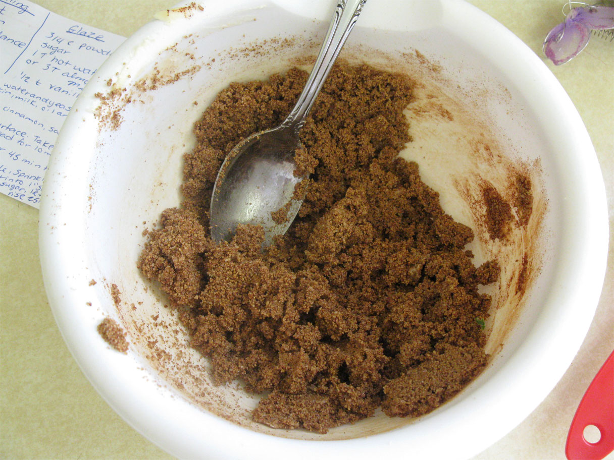 Meanwhile, prepare the cinnamon/sugar filling by stirring all of the ingredients together in a small mixing bowl until crumbly.