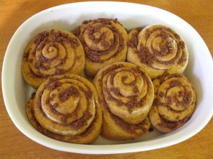 * You could also just spread on the margarine and top the dough with brown sugar and cinnamon. We like to do that a lot of the time too instead of making the Cinnamon Filling. 🙂