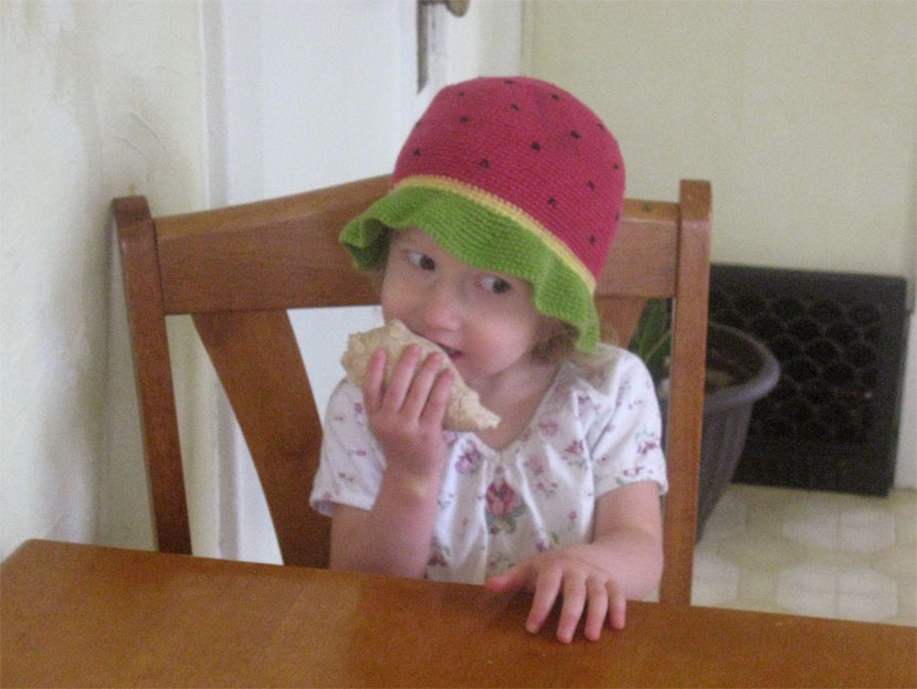 And I even got Kesa to take off her watermelon hat long enough to put a ponytail in, although she was not too thrilled about it!