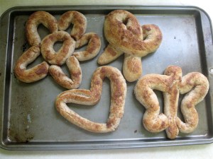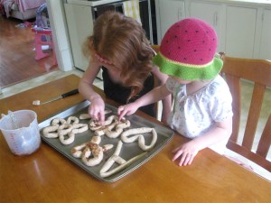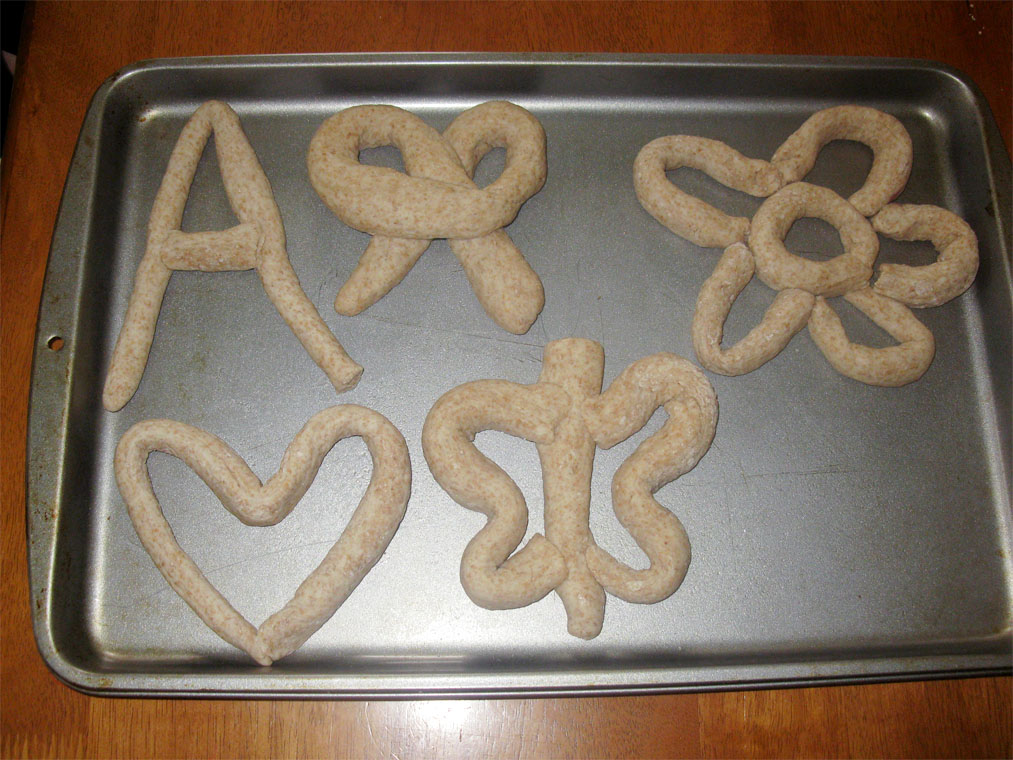 This is a great recipe for kids to get them in the kitchen and having fun. The whole wheat dough makes for a healthy snack bread. Shape the dough into standard pretzels or get creative and make whatever shapes your heart desires!
