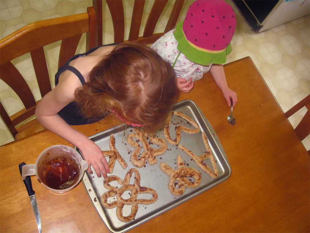The girls had fun doing this with their fingers because they kept getting to lick them!