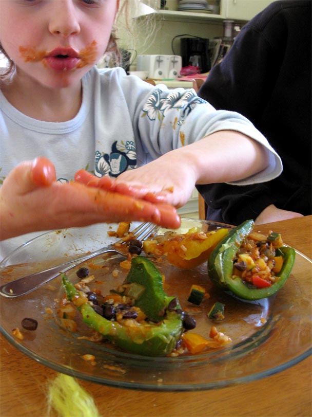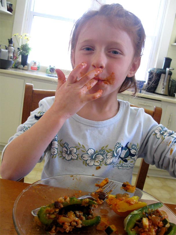 The stuffed peppers look delicious. I remember when you first made them for me when you were about 13. Autumn is so funny ,the way she giggles when she’s up to no good. You’re right, who doesn’t like Michael Landon.