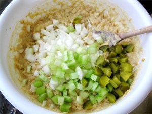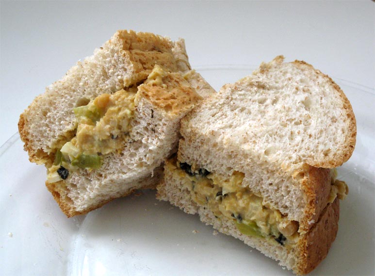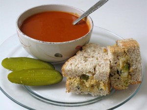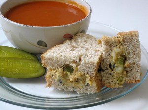 Since I wrote out all my recipes the other day, I thought that I would try out something new for lunch today. I’ve been really wanting a nice bowl of soup and a sandwich lately, so I made a vegan version of tuna salad using chickpeas.
