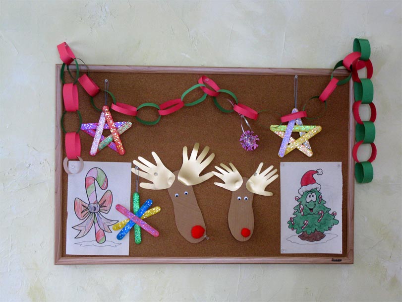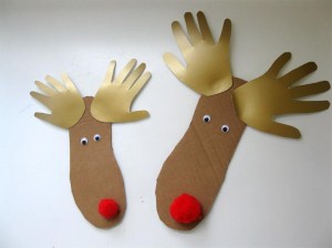 2. Trace you child’s hands on yellow or gold paper and cut them out for the antlers of the reindeer.