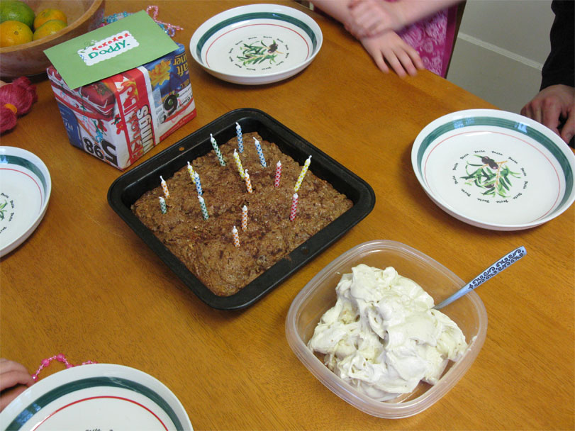 This morning we all sat down to a nice breakfast of birthday cake and ice cream and had a mini-birthday celebration for our beloved Pa. As you can tell my children watch way too much Little House On The Prairie. Pa is the new word for Daddy around here. It is actually very cute to hear the girls call us Ma and Pa.