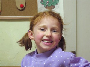 It has been loose for quite a while, but she was so eager to lose it and has been wiggling it like crazy these days so that she could get money from the tooth fairy to use to buy Christmas presents. She got a whole dollar and was very excited. She has something in mind to get her sister and is saving up her money so that she can go Christmas shopping. She also says that she is going to get me that camera that I want, which I thought was so sweet.