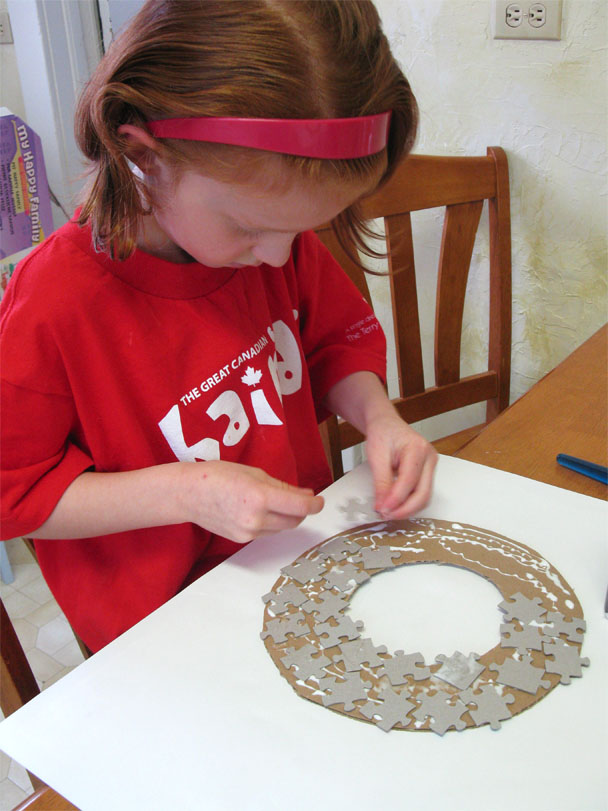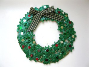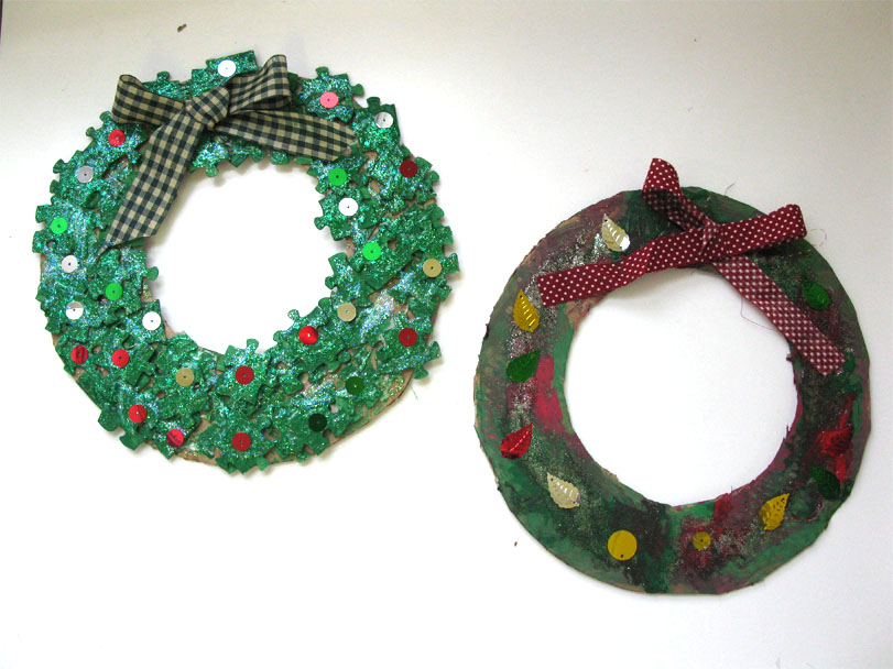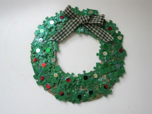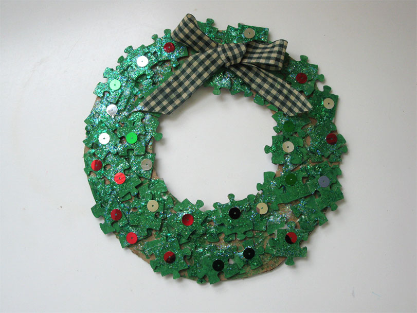 Kesa just painted and decorated her wreath without using the puzzle pieces.