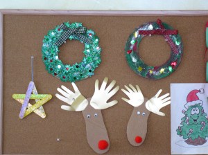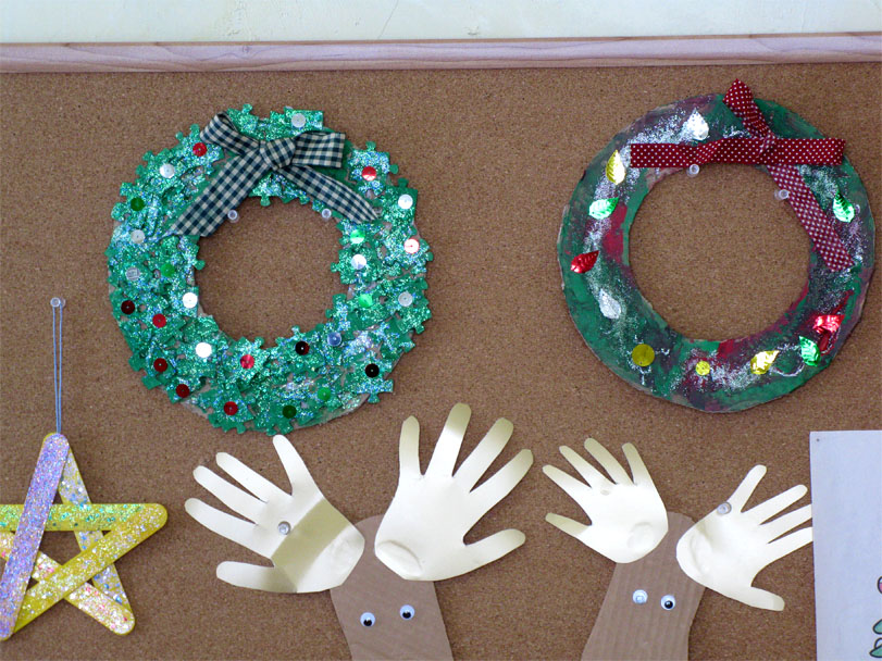 We hung them on our cork board along with the other Christmas crafts we have been making over the past few weeks.
