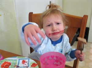 LOL, how could you forget that she eats her toast with a fork?She is hilarious and you are a very patient Mom:)
