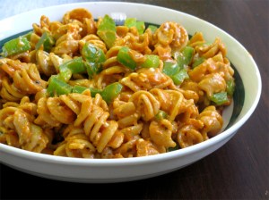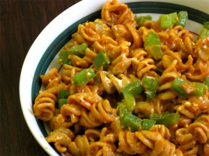 You could use whatever pizza topping that you like in this dish. I think vegan pepperoni would’ve been good in here as well, but it was great just the way it was. The girls love anything with ‘cheese’ so they were sold.