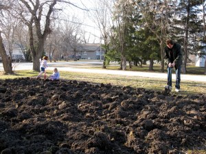 Can’t wait to see how your garden grows! Thanks for sharing pictures of the prep work and your team of workers.