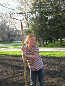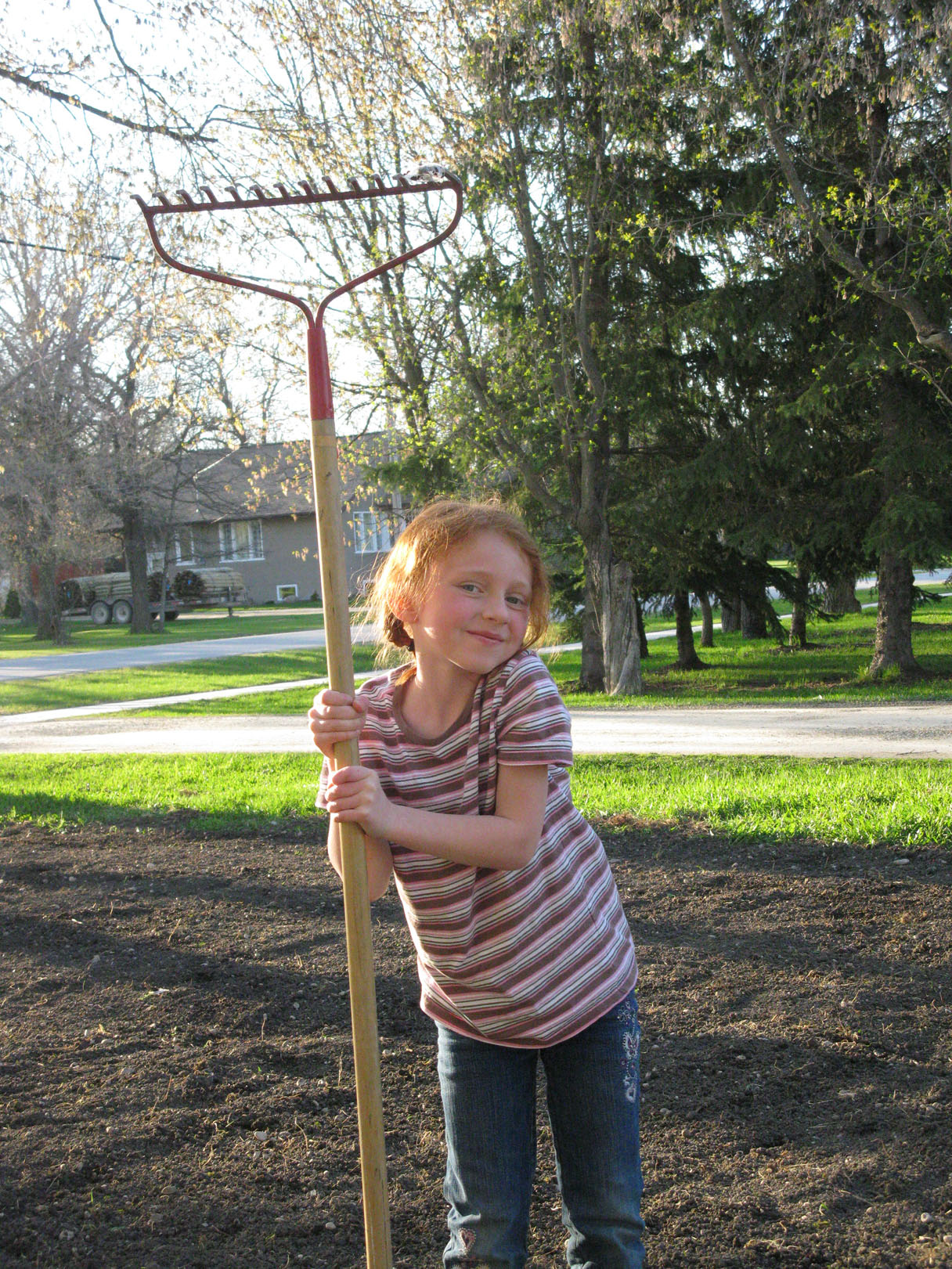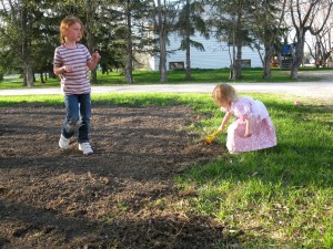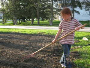 Yesterday my hubby tilled it and raked it. Of course he had his helpers with him.