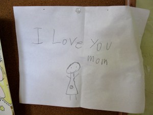 I love hearing them say “mom” in their sweet little voices, whether they have a question or are just needing to tell me something oh so important, even if it is 100 times a day. I love receiving hugs and hearing “I love you.” I love their drawings and notes that they love to shower me with.