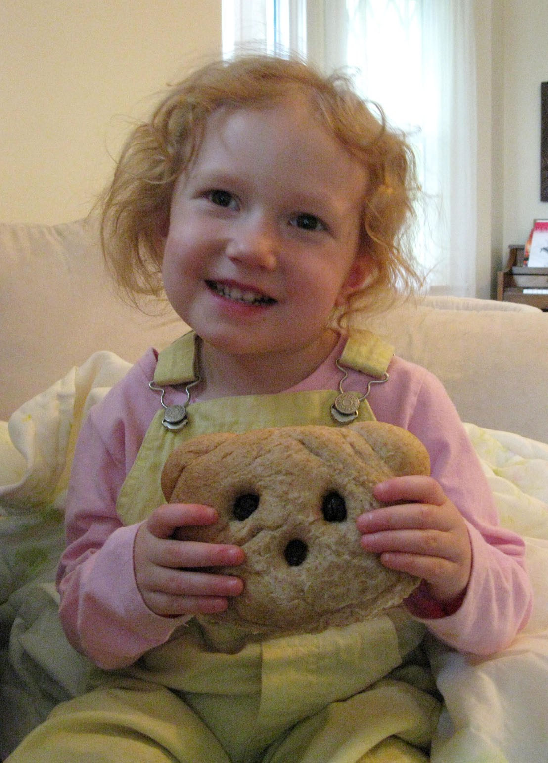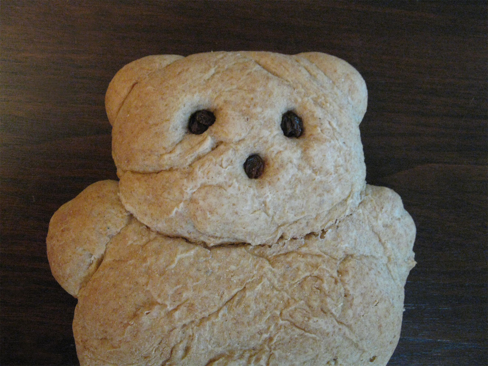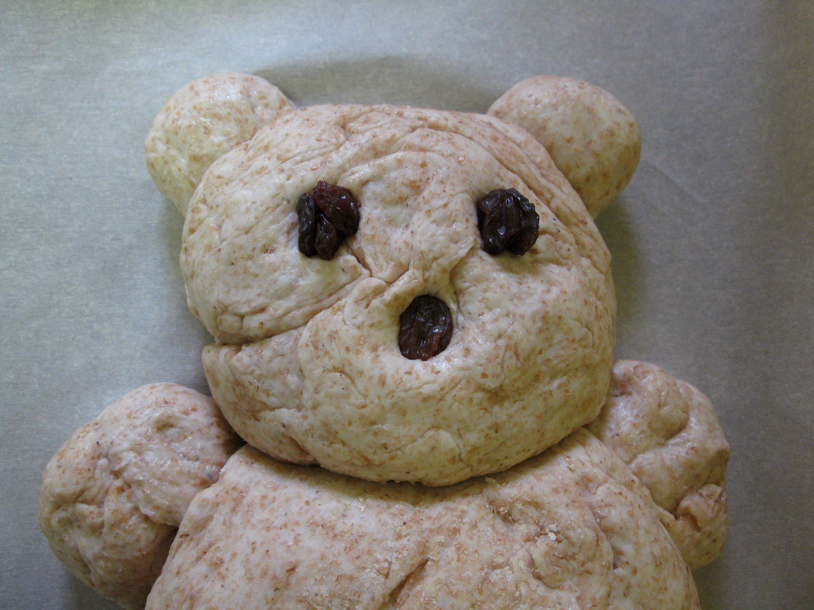 12. Press two raisins into the bears head for the eyes and one for his nose.