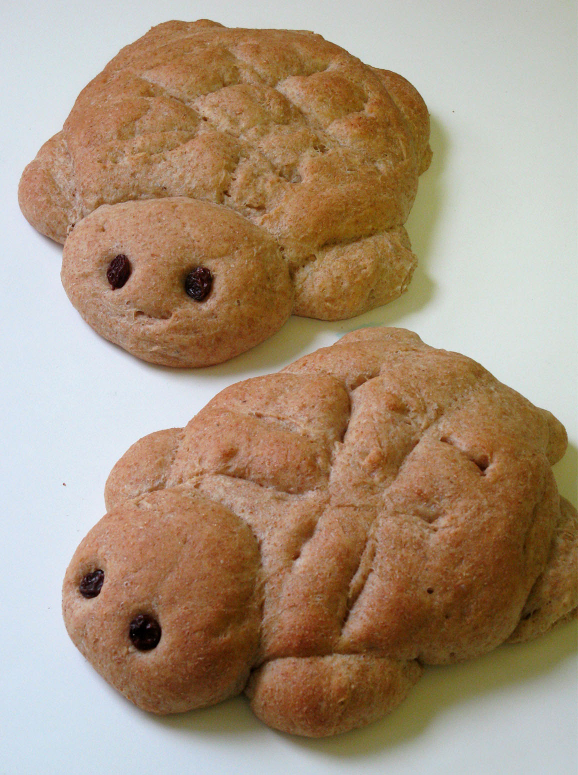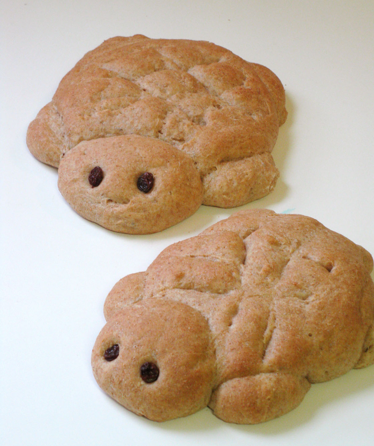 9. Repeat turtle instructions 1-8 with the other half of the dough to make your second turtle bread.