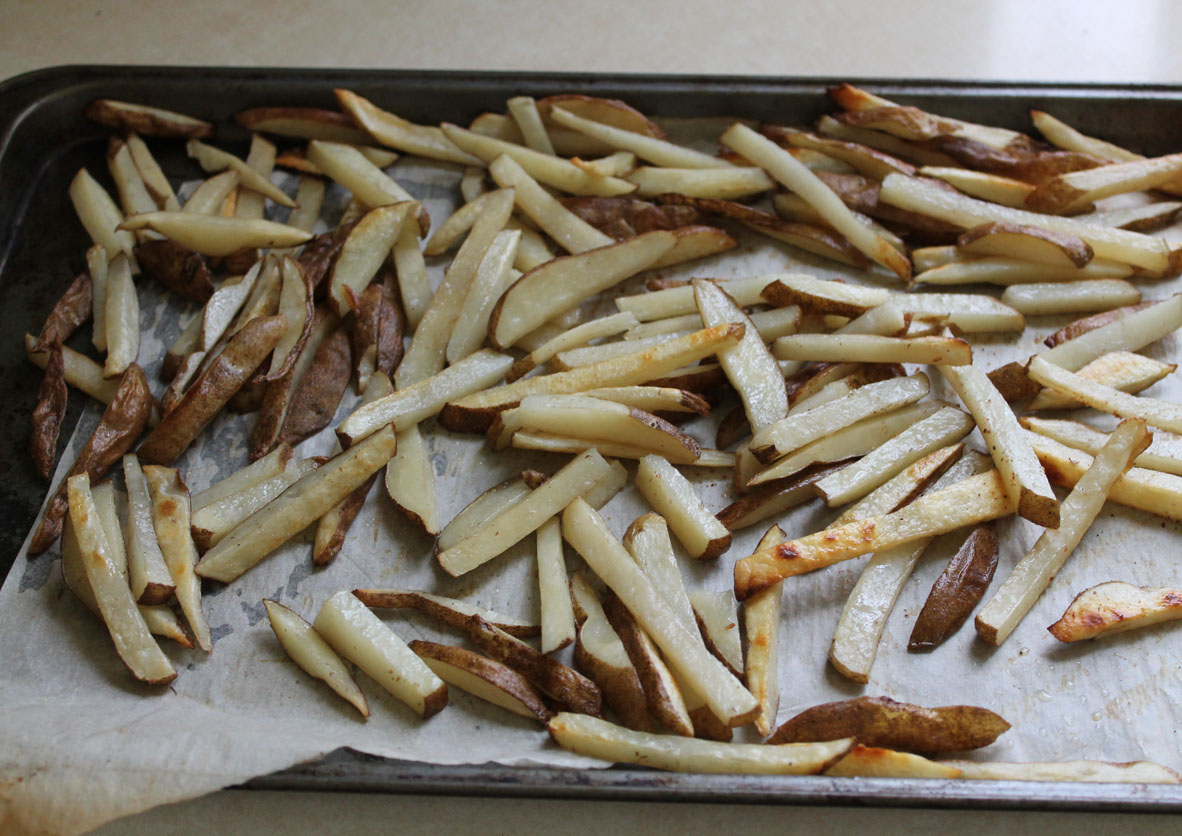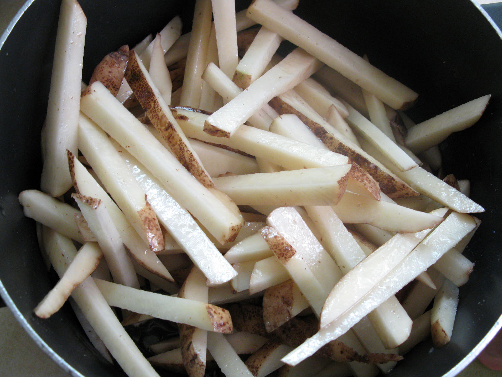 Serves 4-5 (reduce potatoes and oil as needed to make less fries)