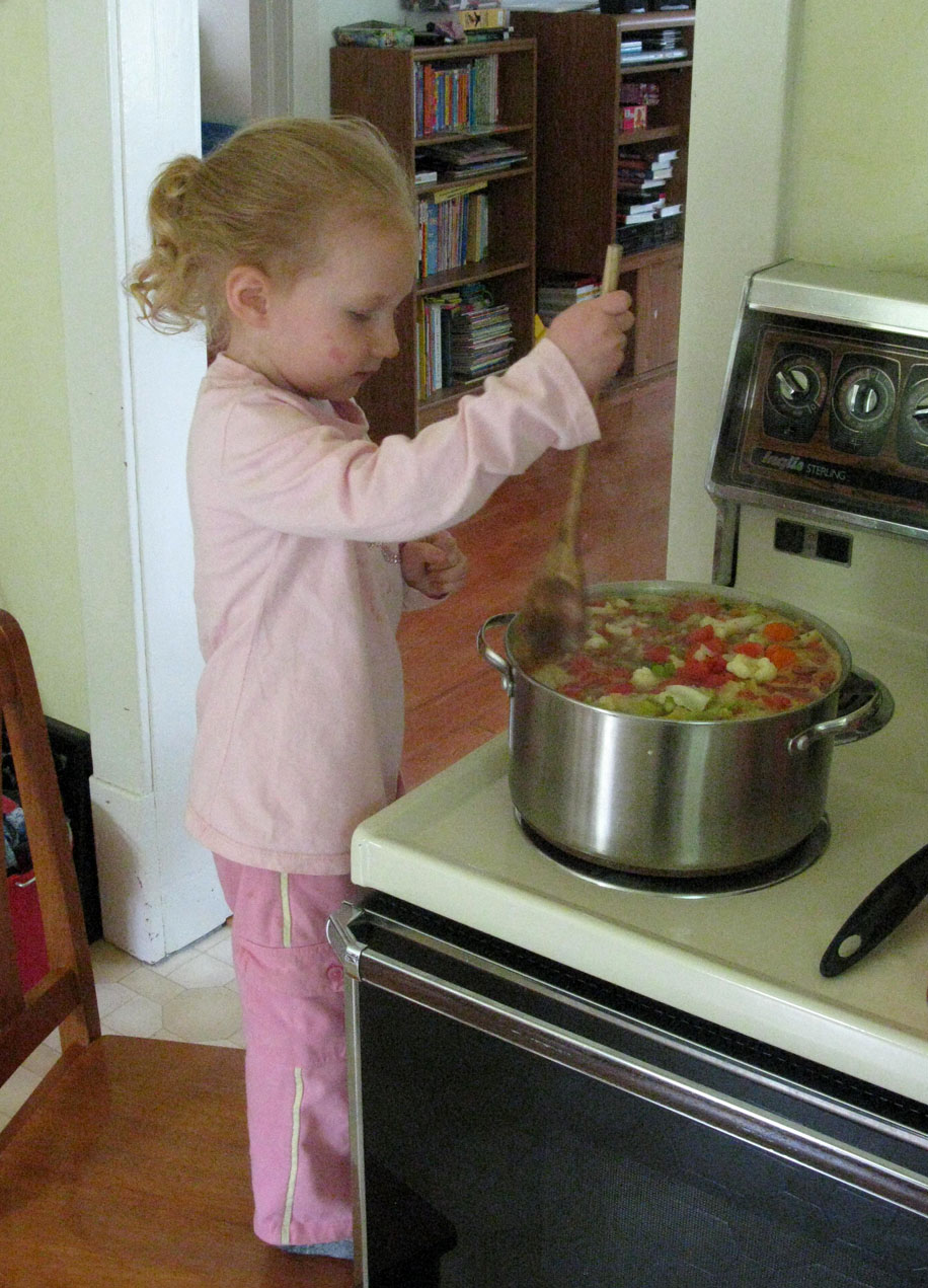 Kesa was right alongside me while I chopped the vegetables and enjoyed helping and taste testing all of the different vegetables.