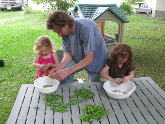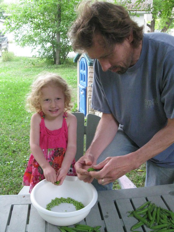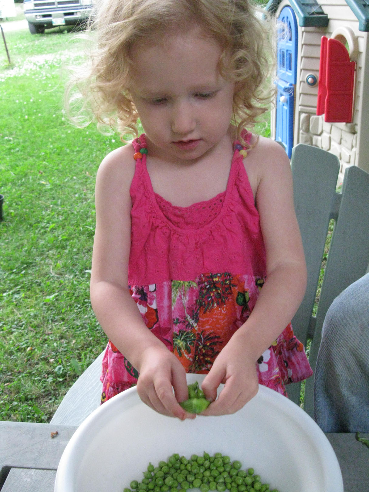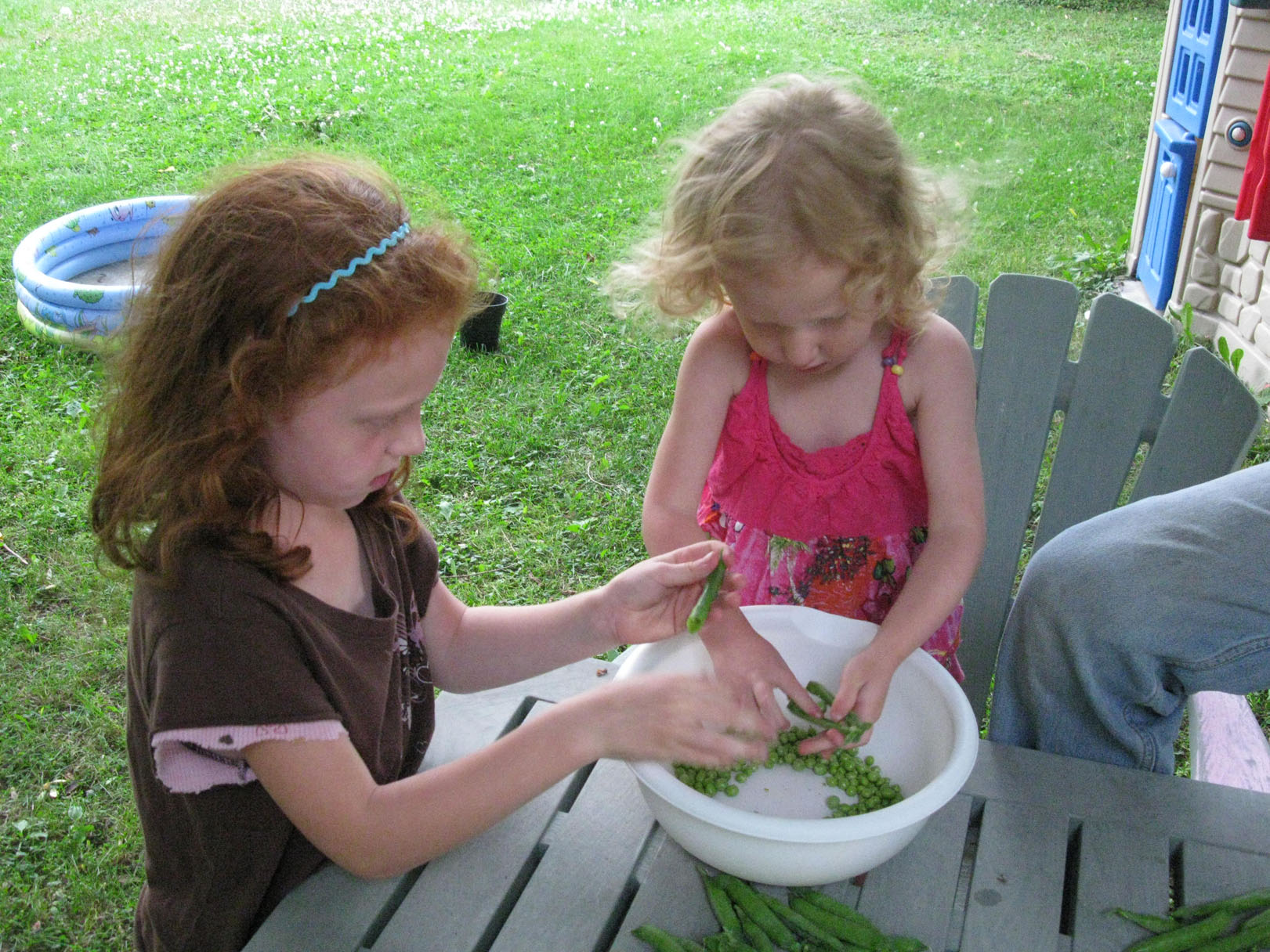 Here are some pictures and a video of the girls shelling peas with daddy. 🙂