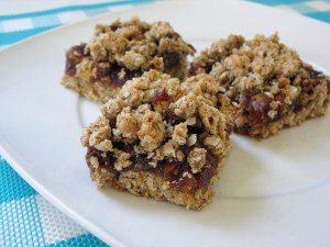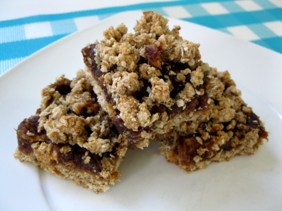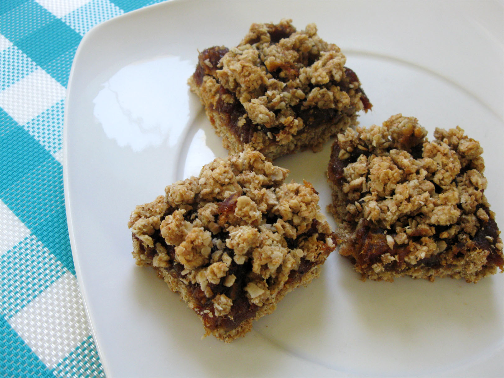 In a large mixing bowl, combine the oats, flour, baking soda and sea salt. Add the maple syrup, sunflower oil and vanilla and stir until combined. Transfer 3/4 of the crust ingredients to a non-stick 8×8 baking pan. Press the mixture evenly into the baking pan then pour the date filling on top and sprinkle the remaining 1/4 crust mixture on top of the date filling. Bake for 23-28 minutes, until golden brown. Allow to cool completely before cutting into 12 squares.