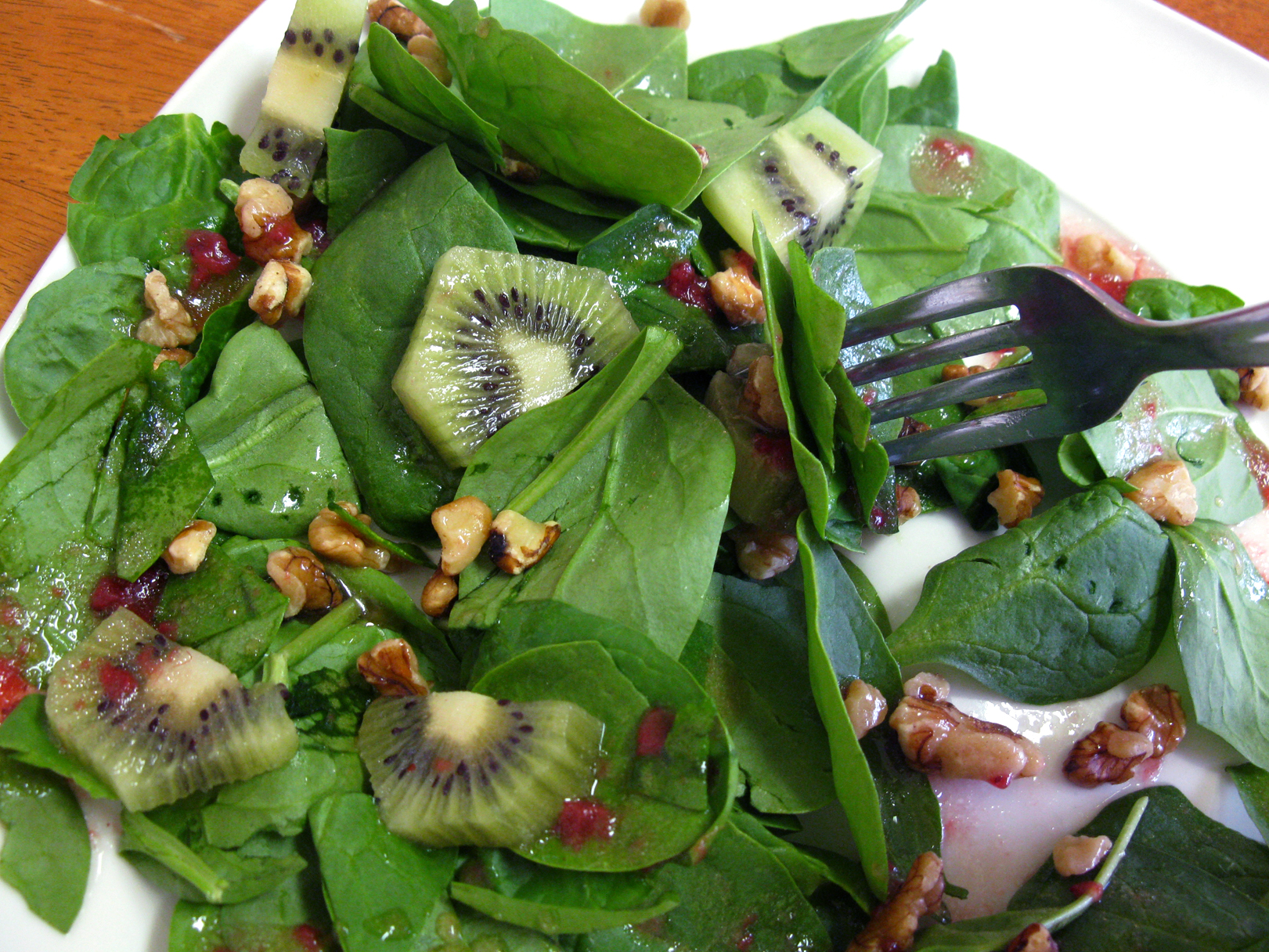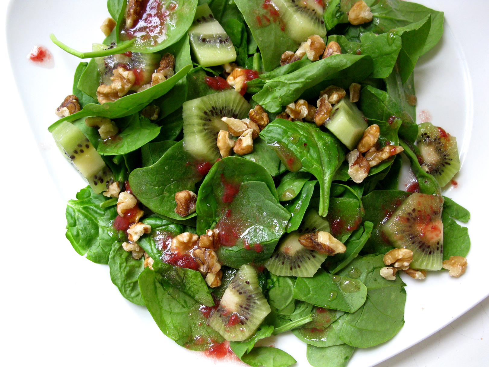 Strawberry Kiwi Spinach Salad with Walnuts