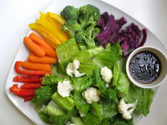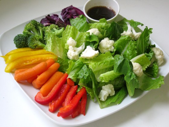 For the Rainbow Salad, I just chopped up all different colored vegetables and chowed down. We have: