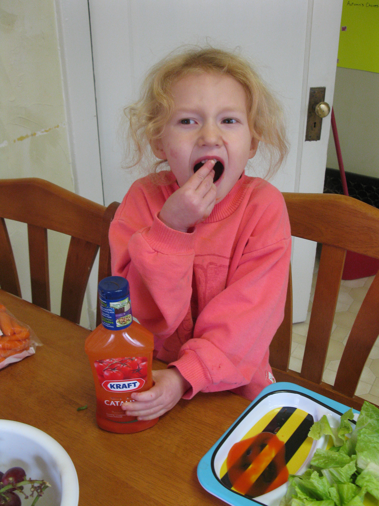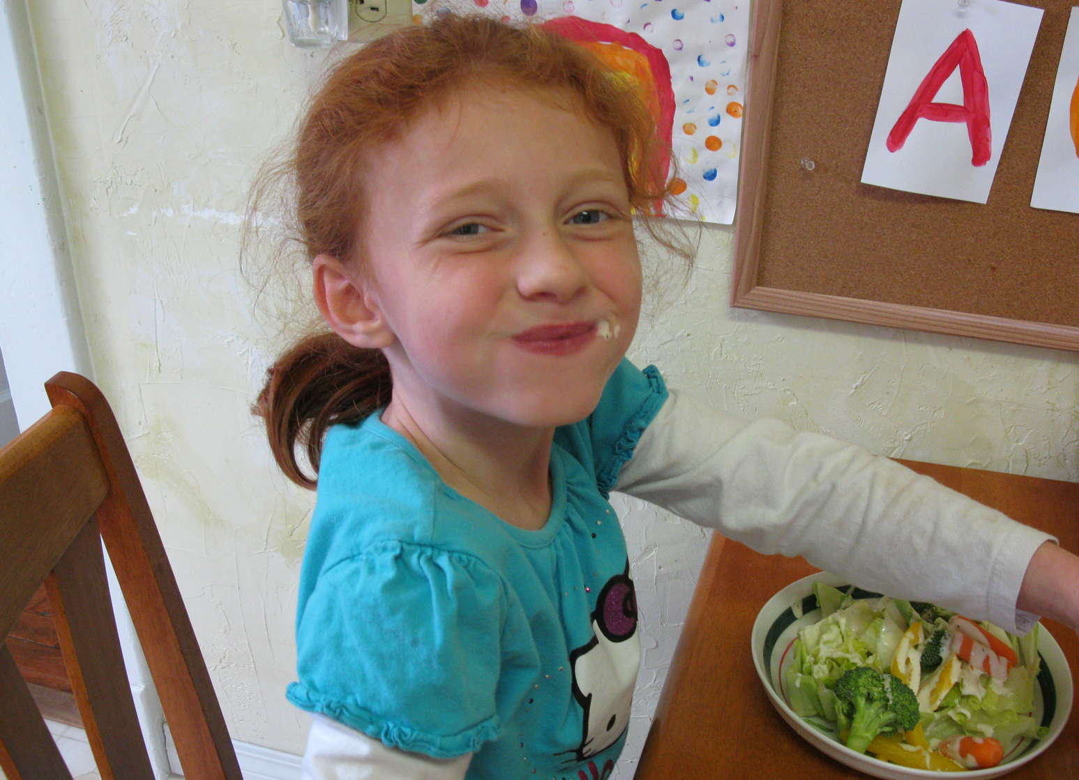 After that it is VEGGIE TIME. The girls are eating those veggies right along with me.