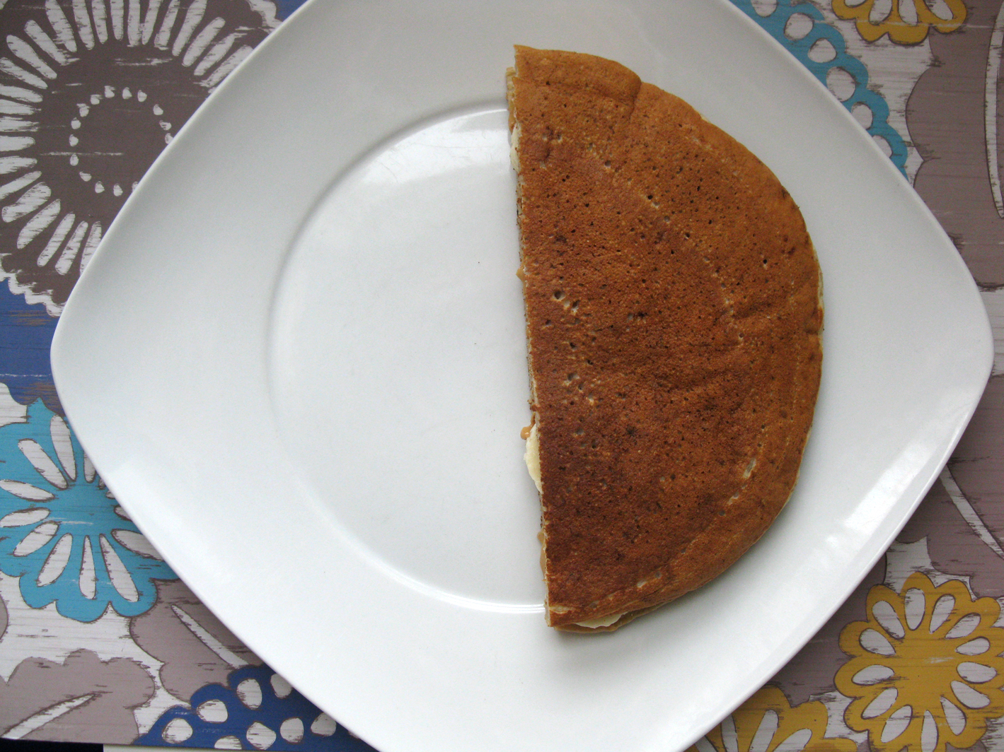 Here is a neat little recipe that we enjoy around here. I hate wasting food, so if we ever have left over pancakes from breakfast we use them up for lunch and make pancake sandwiches.