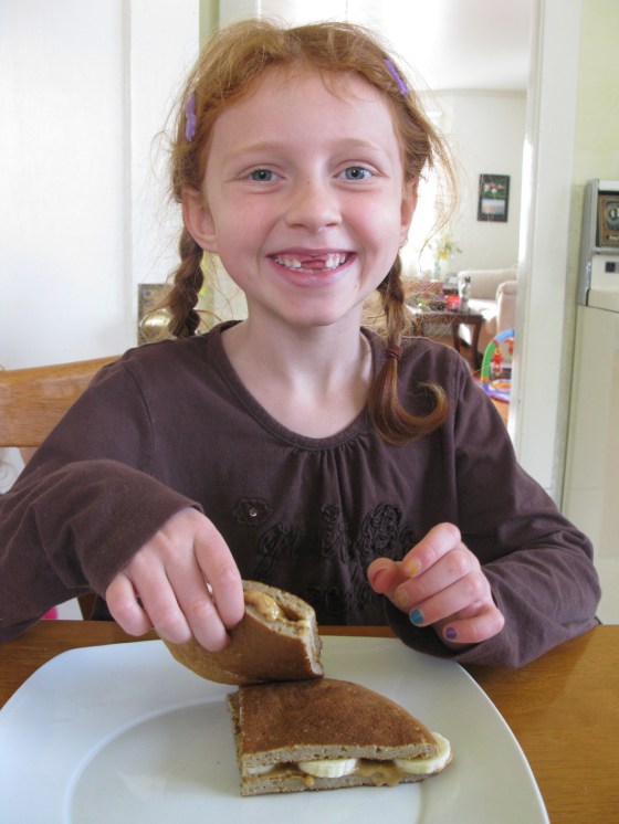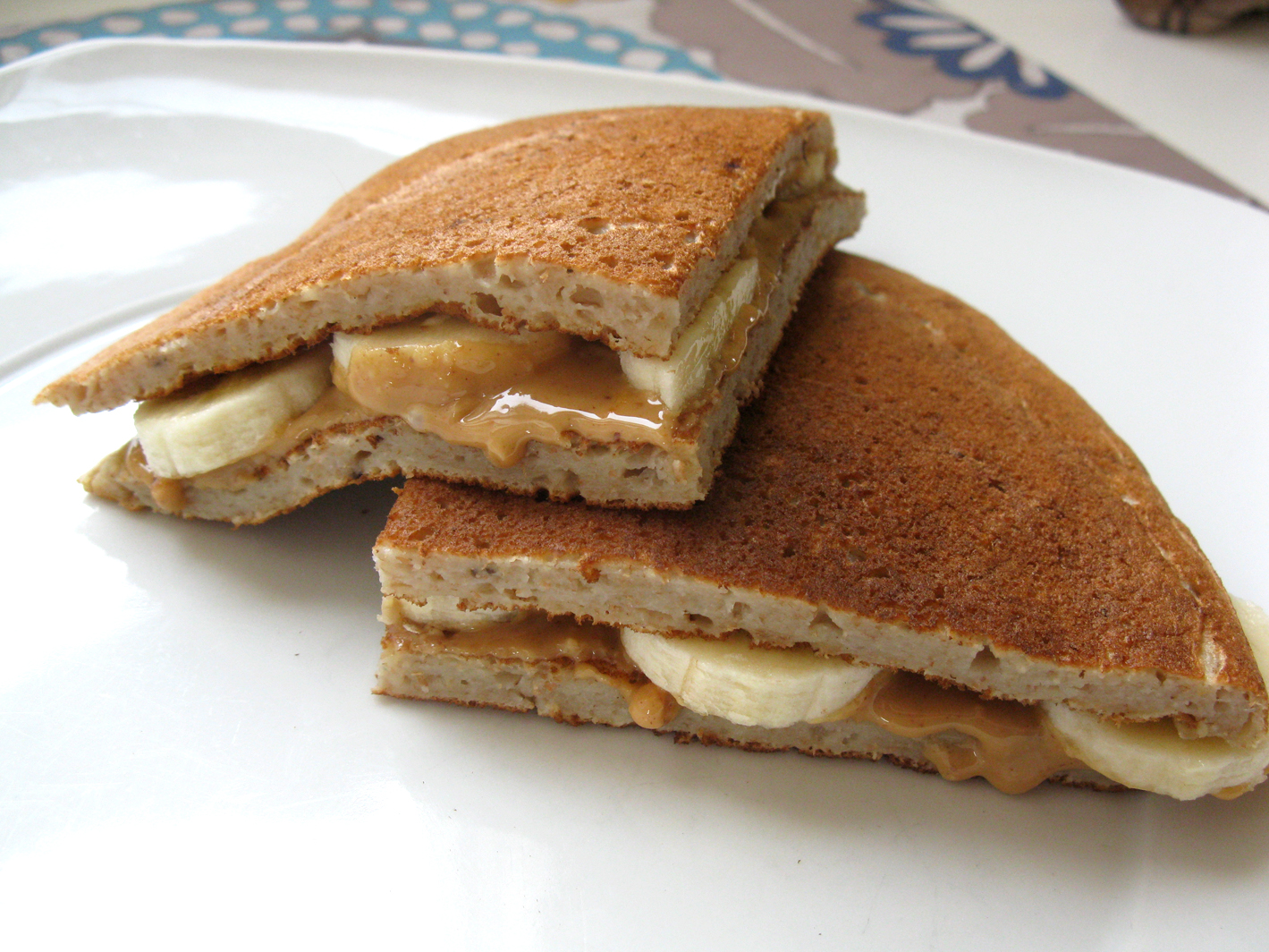 This morning we had Banana Pancakes for breakfast and so for lunch this afternoon we had Peanut Butter Banana Pancake Sandwiches.