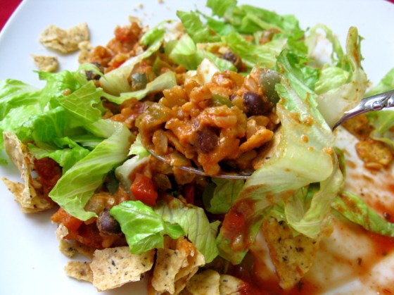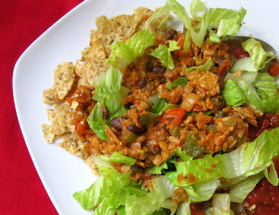 Serving suggestion: When we ate this last night we also chopped up some romaine lettuce and added some extra salsa, just to jazz it up. It is crazy delicious as is though.