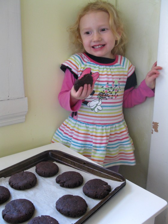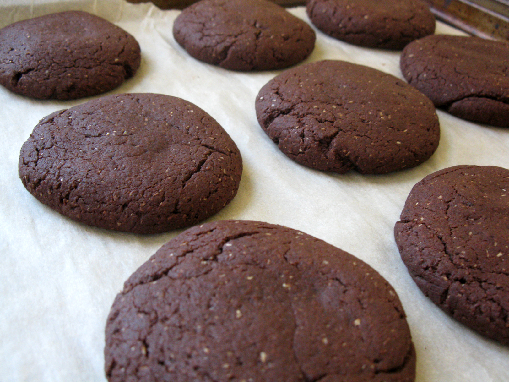 I am loving chocolate these days. Ever since I made that Chocolate Cherry Almond Granola I have been baking with a lot of cocoa powder and coming up with many delicious chocolate creations. I made these cookies because I love the combination of chocolate and almond. It took a few tries to get them just right. In all of the recipes I came up with I used maple syrup, but I didn’t get them quite sweet enough for my liking until last night. I made many batches with varying amounts of syrup, some with whole wheat flour and some with spelt flour. I decided on spelt flour for this recipe because it gives the best texture, not too chewy and not too crumbly. This cookie is everything I could ever want in a cookie.