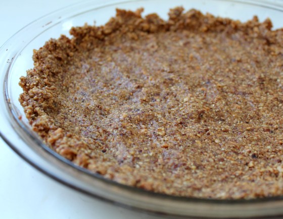 Place the ground almonds into a medium mixing bowl and add the sunflower oil and pure maple syrup. Mix until combined. Press the crust mixture into a 9 inch pie pan.