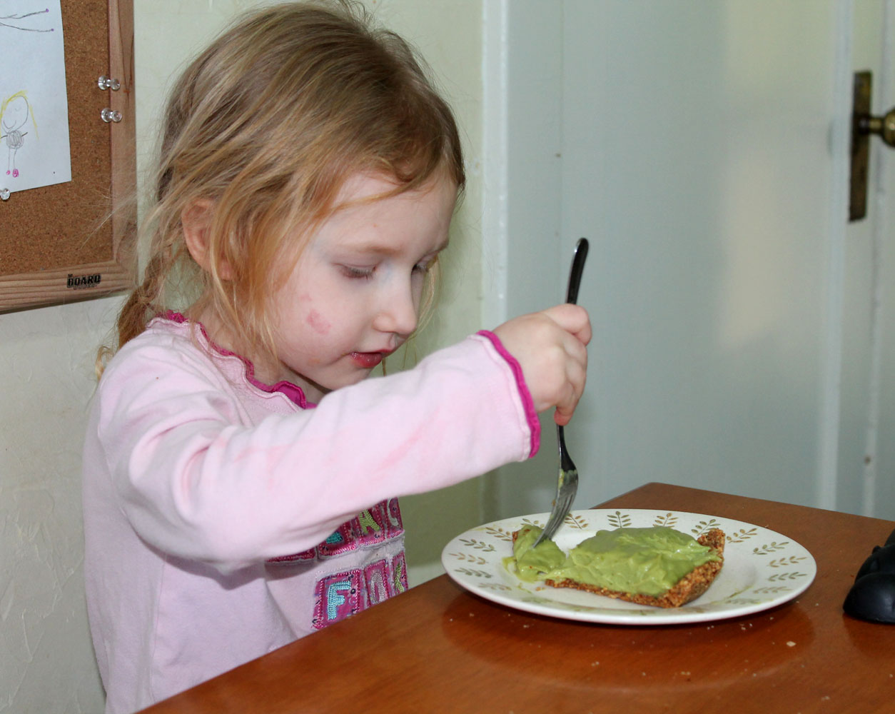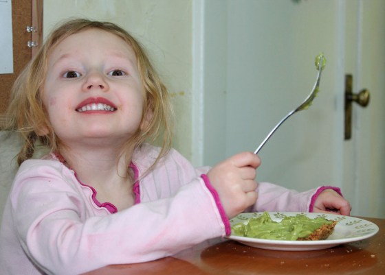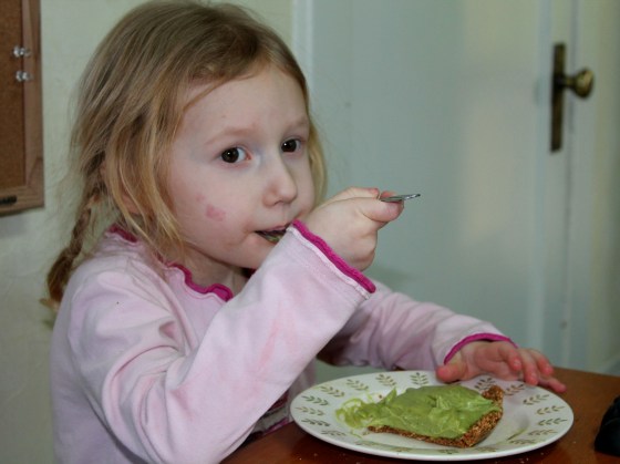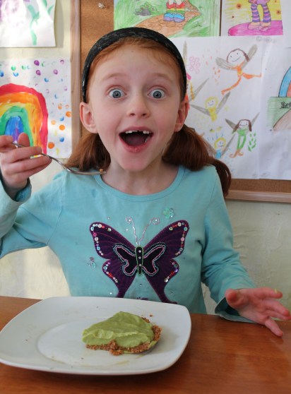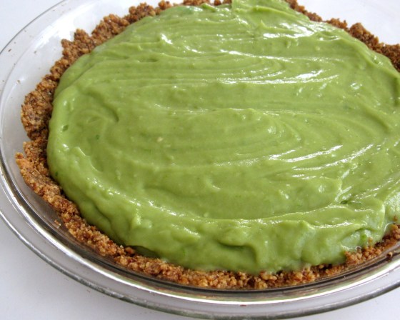 I got them all excited about the fact that I was making a lime pie and when it was time to make the filling I made sure that they were busy playing while I transformed the avocados into a lime pudding filling. When the pie was done they devoured it. He he he. 😉