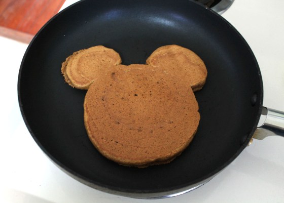 I made the regular round pancake and added two smaller round drops of pancake batter on top to make two ears.