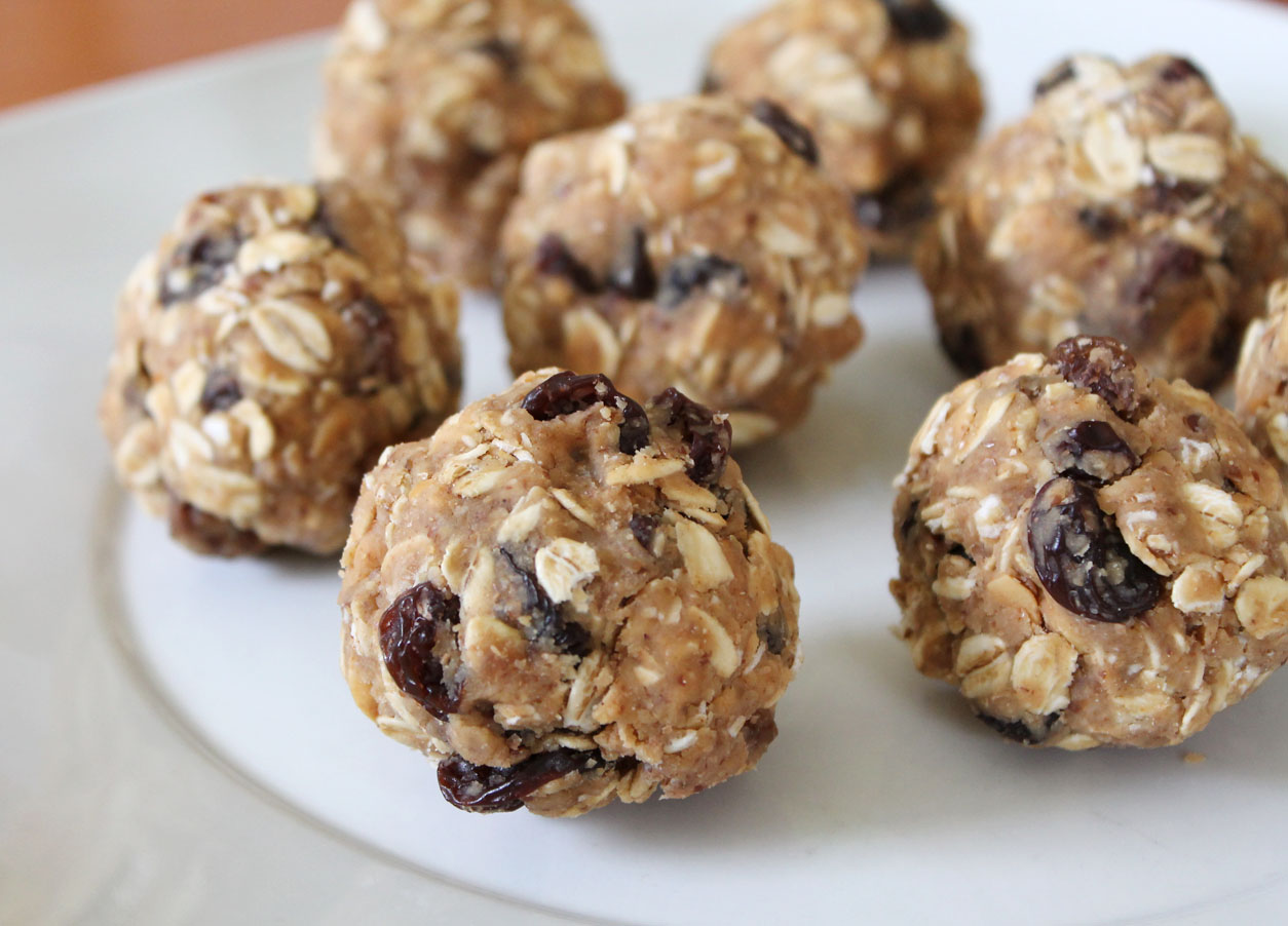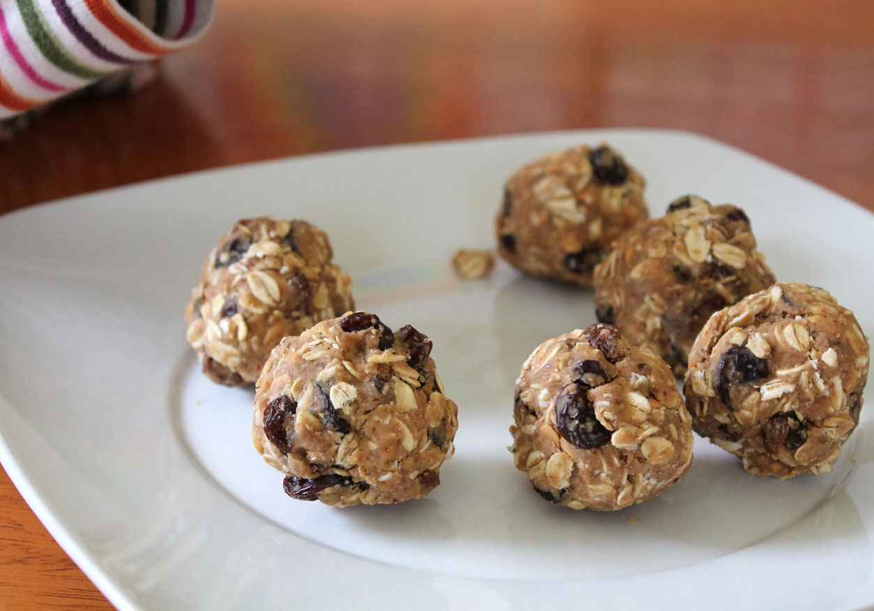 A healthy no-bake treat made with the goodness of oats, flax, peanut butter and raisins!