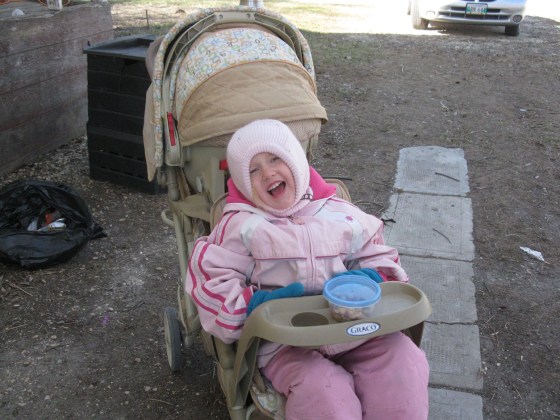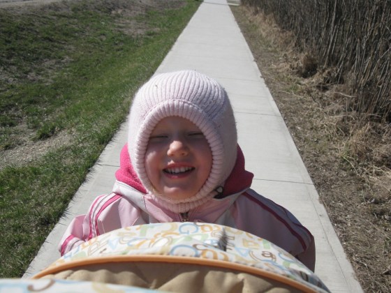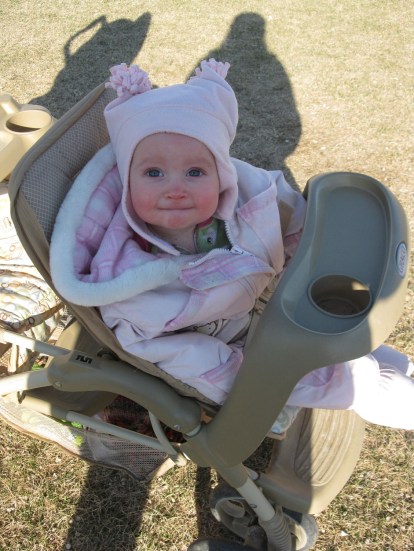 Serafina is getting big enough to sit in the stroller without the car seat anymore. My little baby is not so little anymore. 😦 I would let her sit this way already, but it has still been too cold out.
