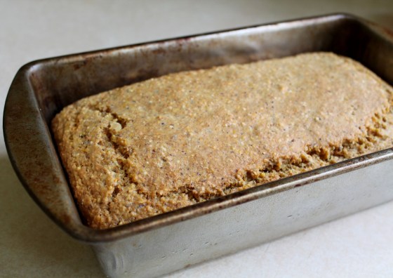 Preheat the oven to 350ºF. Combine the cornmeal, flour, baking powder, baking soda and sea salt together in a large mixing bowl. In a small dish whisk together the ground flax seed and warm water to make your flax egg. Allow the flax/water mixture to sit a few minutes to thicken. In a smaller mixing bowl whisk together the milk, sunflower oil and maple syrup. Add the flax egg to this mixture as well. Pour the wet ingredients into the large mixing bowl with the dry ingredients and mix until just combined. Transfer the batter to a 9 x 5 loaf pan and bake for  35-40 minutes. Loaf is ready when slightly golden and a toothpick inserted comes out clean.