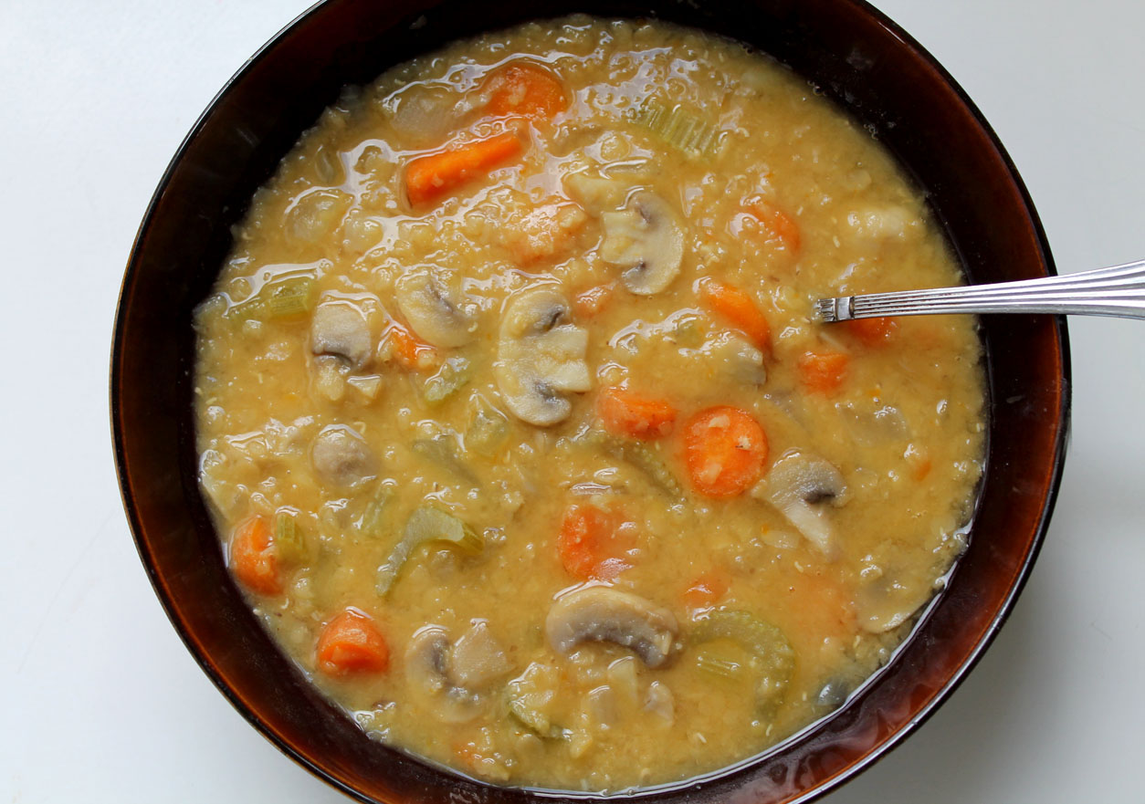 Red Lentil Mushroom Soup and Whole Wheat Vegan Cornbread