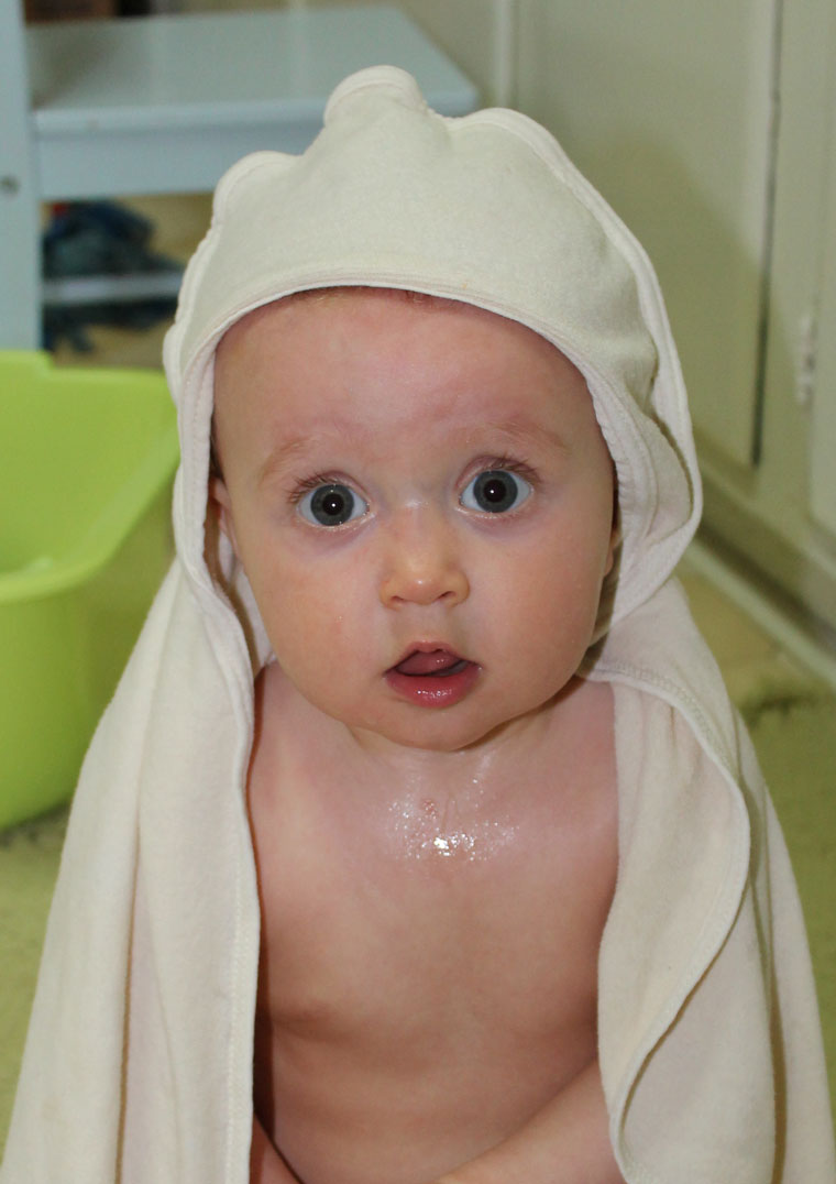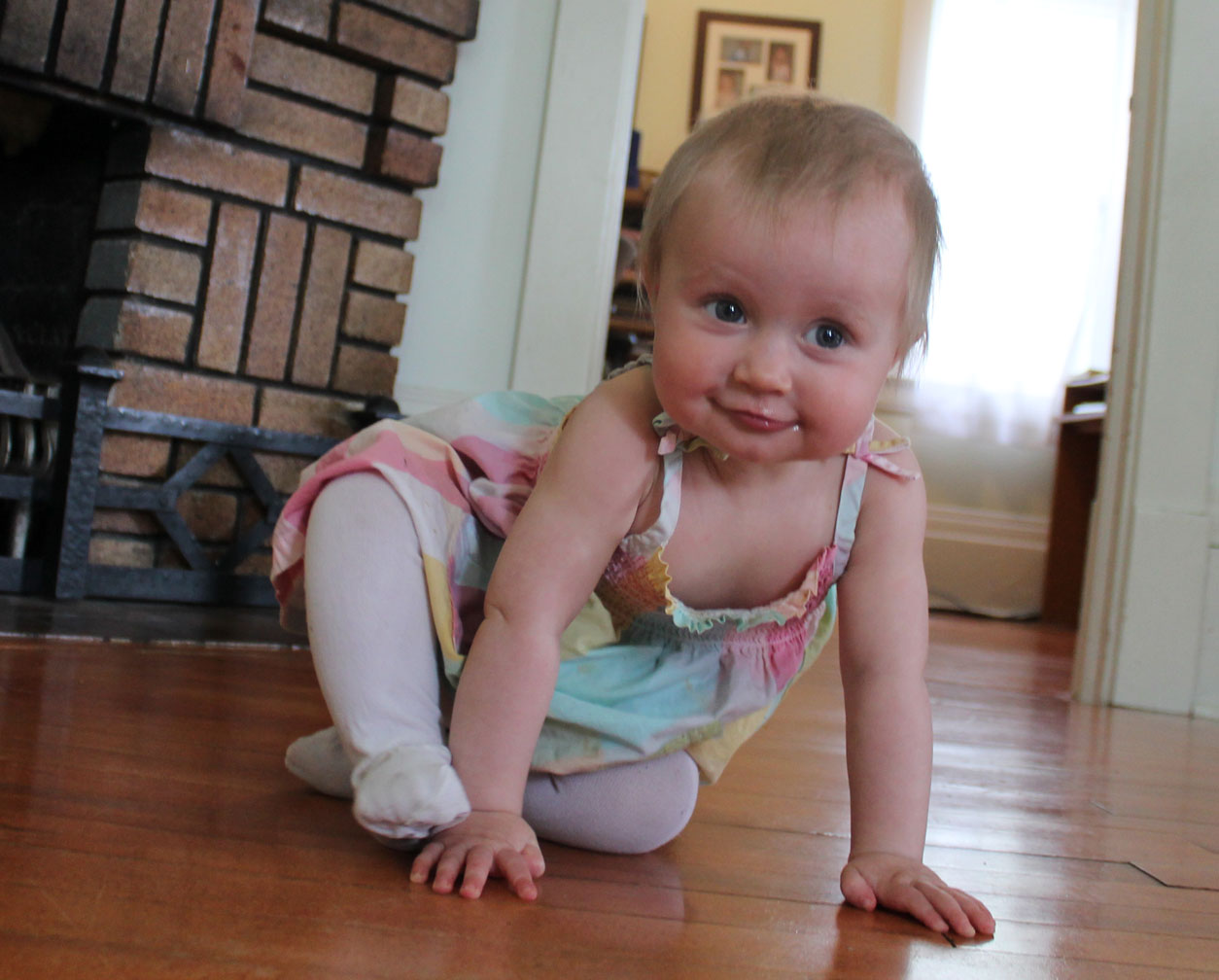 Lately Serafina is a super cranky pants. The only time she is really happy is when we go out for a walk or if she is eating. She loves to eat! She did enjoy the bath too, but I am finding it hard to get anything done with her crying all the time. It is also a very good opportunity to practice patience. She has one tooth on the bottom now and is working on some more. I am hoping that she will be a happy girl again soon for everybody’s sanity. Can’t believe that she is nine months old already! Crawling and trying to pull herself up to stand!