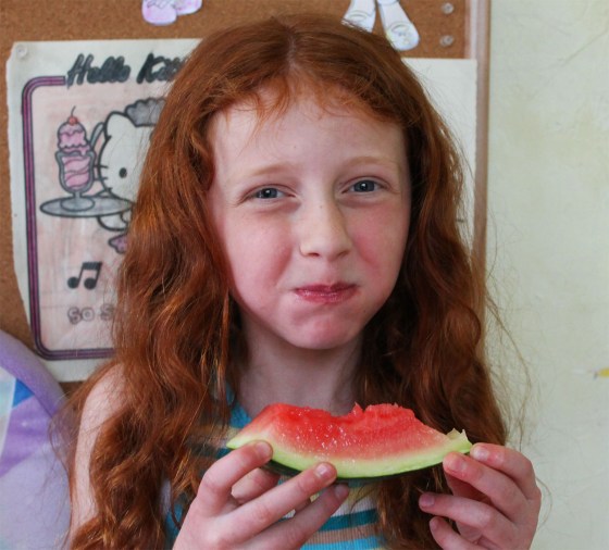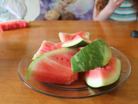 The girls were begging for watermelon since it was on sale this week. We bought two because I knew that one wouldn’t last long.