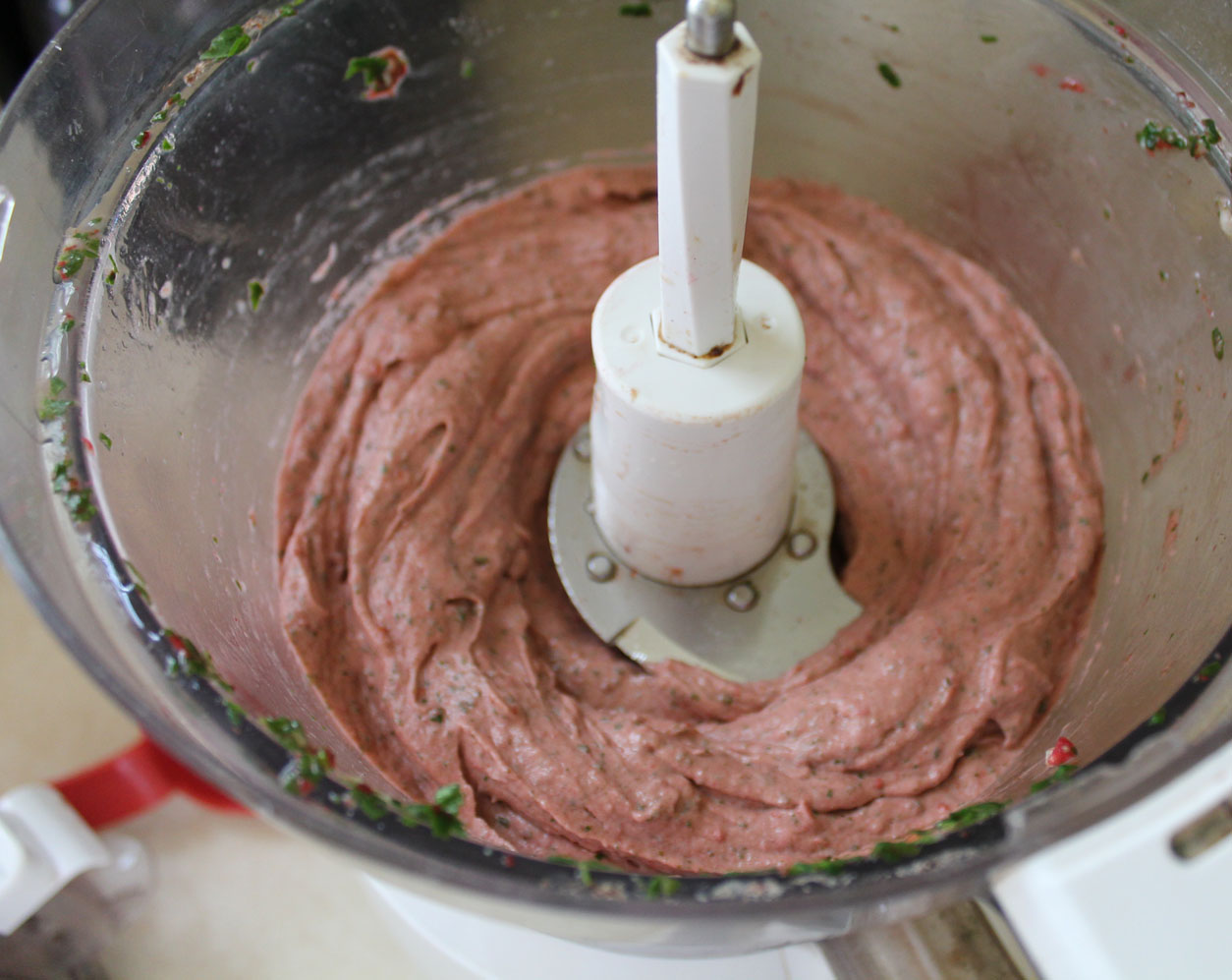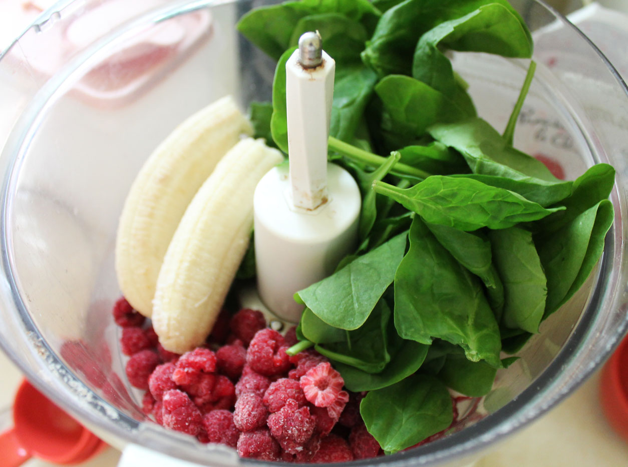 It was just 1 1/2 frozen bananas, 1 cup frozen raspberries, a large handful of spinach, 1/4 cup almond milk and 2 tablespoons pure maple syrup, blended together in a food processor until smooth.