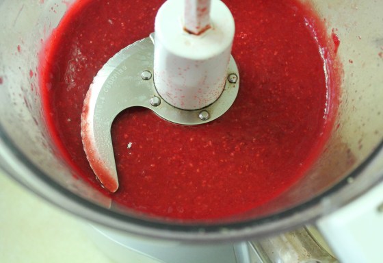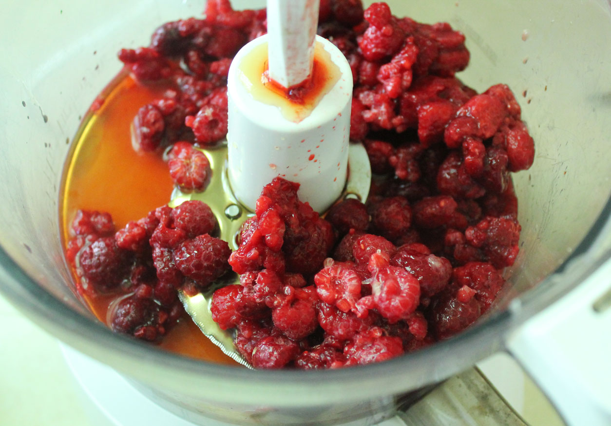 Place the raspberries, lemon juice and maple syrup in a food processor.