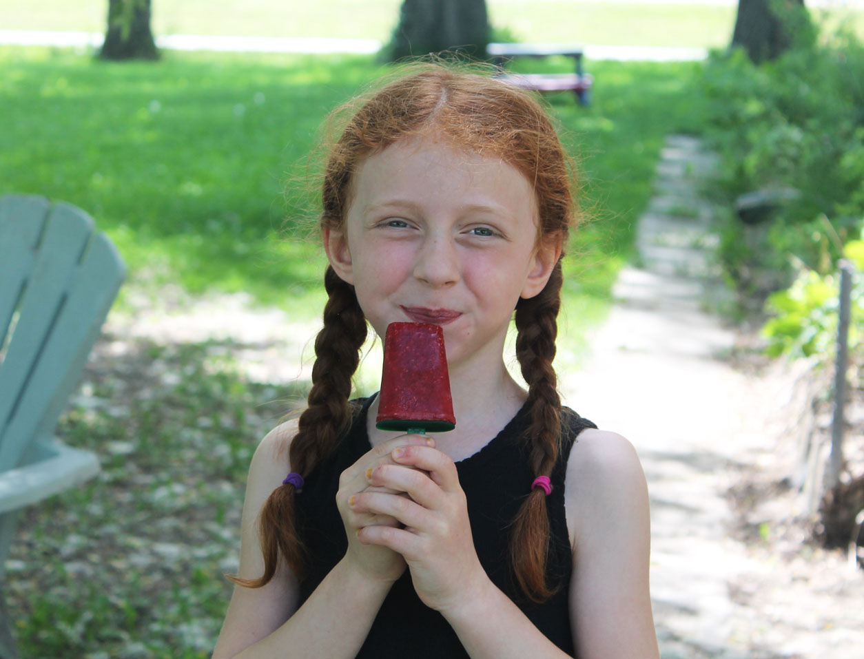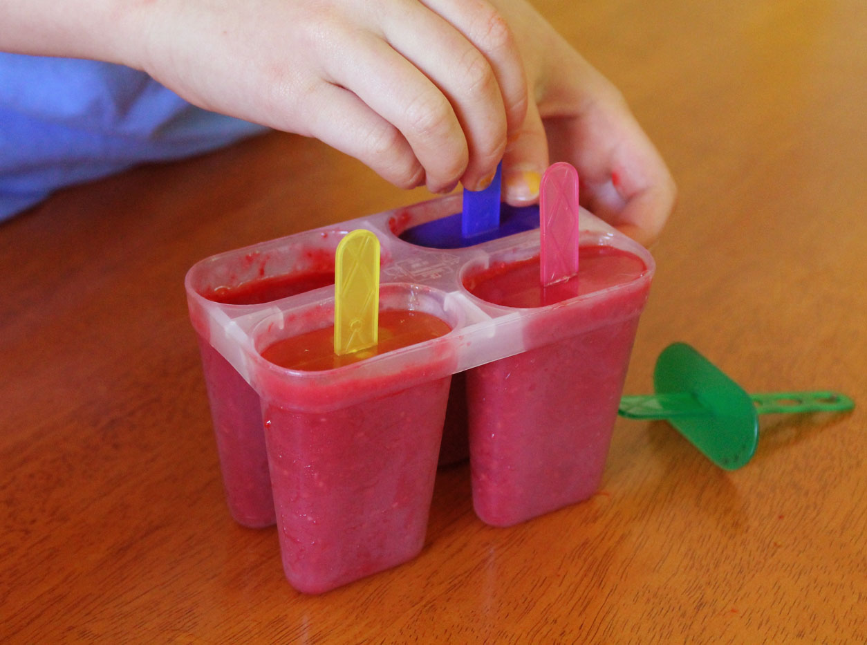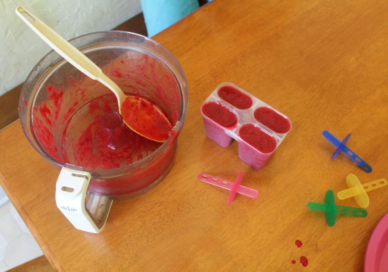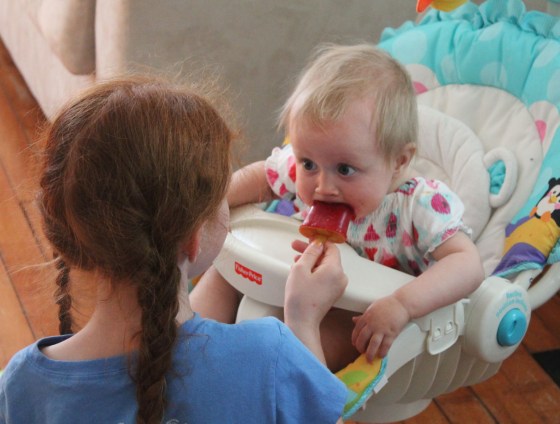 Serafina loved these, as she does with all the fruit popsicles I make. Lucky she has such a generous big sister.