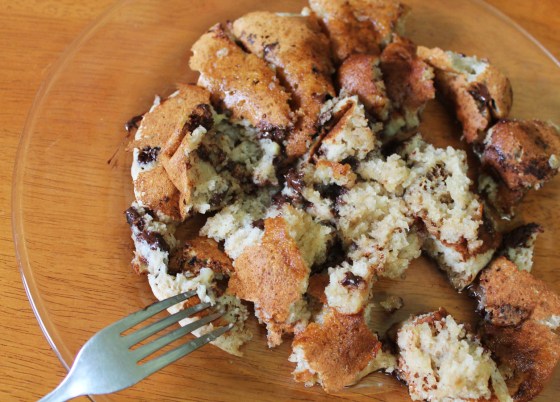 This morning I finally made over my banana pancake recipe. The old one was good, but I wanted them more banana-y and fluffy. I have been tackling these pancakes for a good week and a half, making banana pancakes for my little monkeys every morning and finally decided to go with this recipe. It is pretty perfect. A nice fluffy banana pancake, sprinkled with sweet melted chocolate chips.