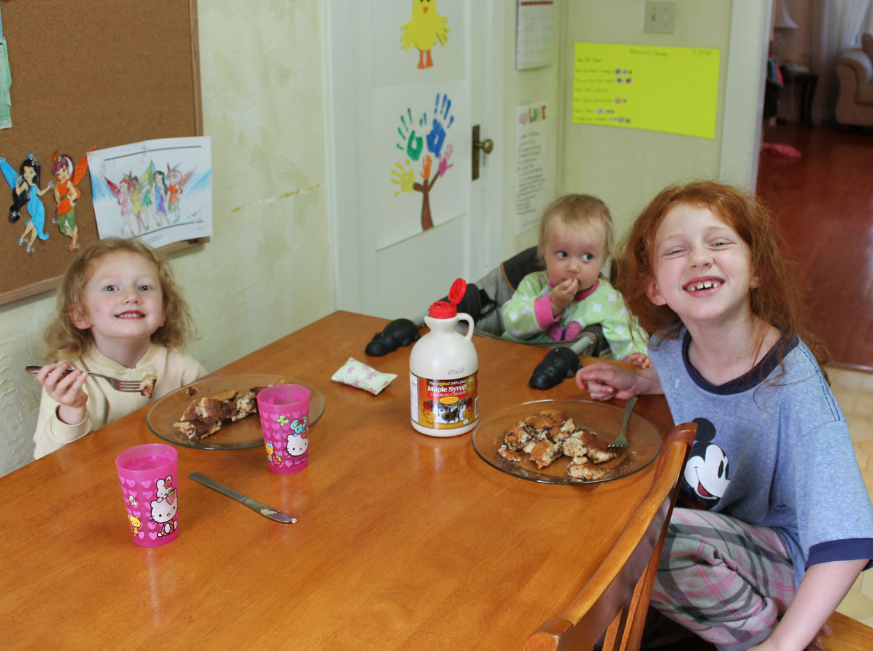 That looks delicious. I’m sure your kids didn’t mind having those pancakes for breakfast for a week! I had to laugh at your descriptions of your old photography skills. Especially the crotch photo–ha! I think you are doing an amazing job of creating recipes to feed your family, and I’m glad you care enough to write them down for the rest of us–thanks!