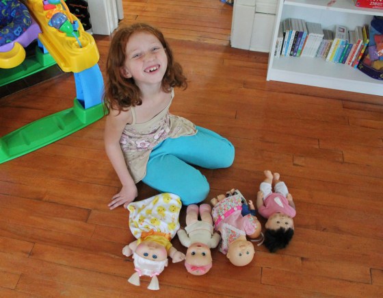 She still loves playing with baby dolls and pretending to be a little mommy, which I encourage. It is nice to see that she is retaining her innocence. One of the things I love about homeschooling is letting my girls be themselves and not having them be pushed to grow up too fast, but develop naturally into who they were meant to be.