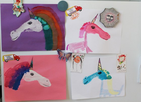 Since it was such a snowy day yesterday I decided to do a craft with the girls. They each made a unicorn out of their footprint.