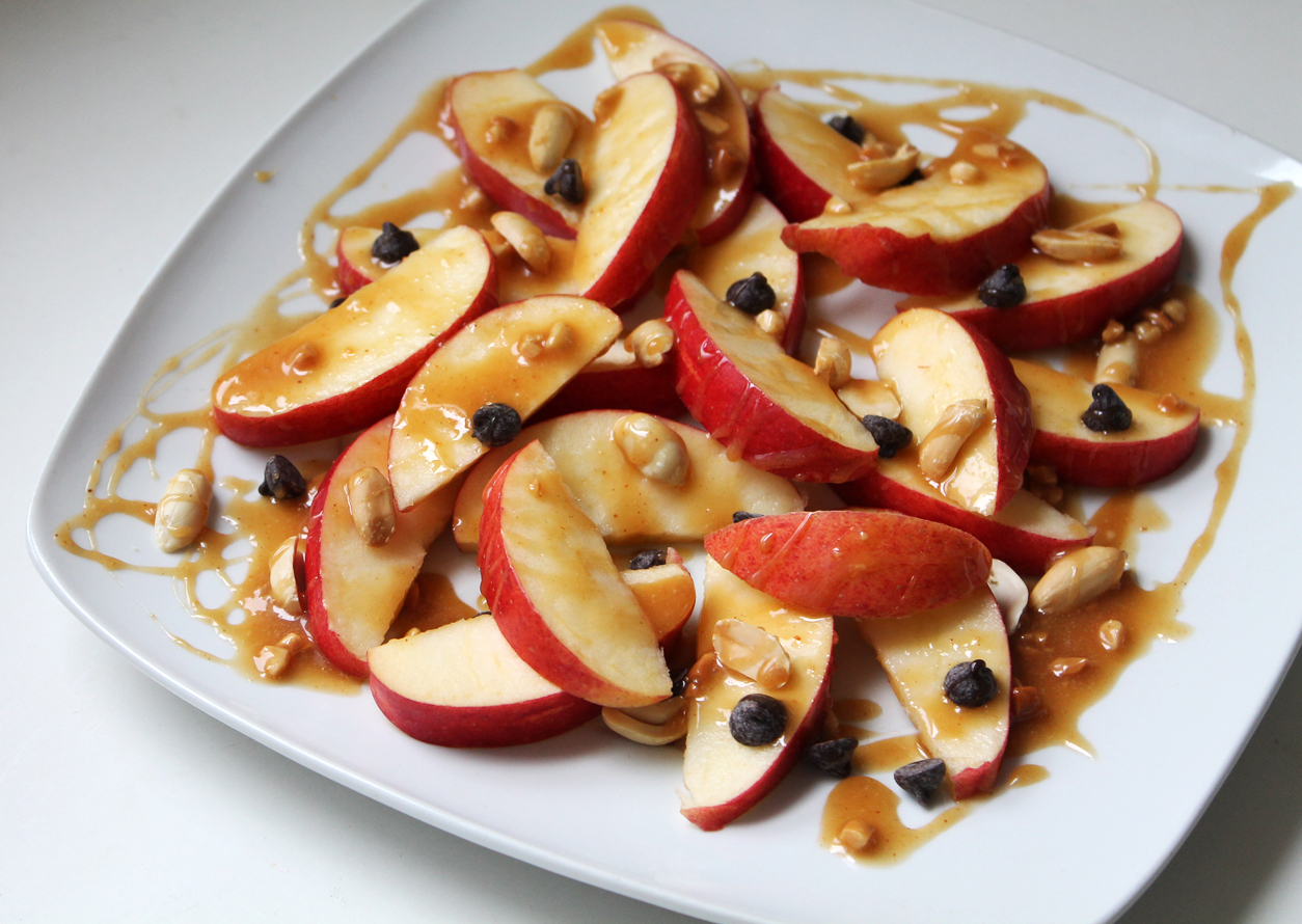 Apple “Nachos” with Vegan Peanut Butter Caramel Sauce
