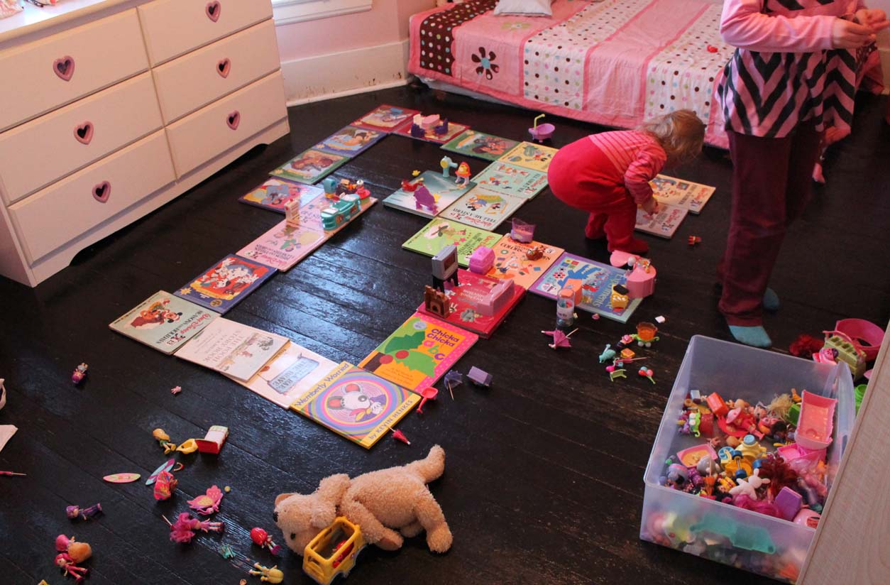 ~ For imaginative play and crazy amounts of mess. Even though it drives me crazy (and I sometimes wonder how the heck they come up with the things that they do), I know that I will miss it. This week they were making mittens for their Tinkerbell dolls out of paper. I said that that would never work, but they managed to do it by taping two pieces of paper together around the dolls hands. They are even removable! They then proceeded to make entire wardrobes of paper clothes for their dolls (you can imagine the mess).
